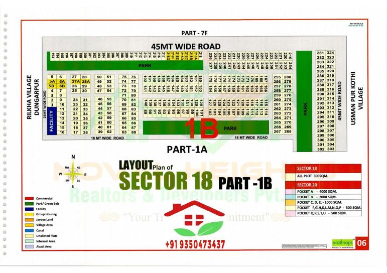 What you should verify· Confirm the exact plot size (300 sqm or other size) for your particular plot number in 7A or 7E. · Confirm how many sq metres you are paying for and price per sqm. · Ask for registered sale deeds of similar plots in the same pocket to gauge actual sale price, not just asking price. · Verify YEIDA’s latest circle rate (which might have been revised for FY 2025-26). For example one article notes a new residential rate ~ ₹35,000/sqm for residential land in YEIDA. · Factor in additional costs: premium location charges (PLC) if plot is corner/park-facing, transfer charges, stamp duty based on circle rate, pending development/possession status.. For Expert Guidance, Call Now: @9350473437Don’t miss the chance to access reliable YEIDA-approved maps and layout plans. Whether you’re buying, selling, or just exploring, we’re here to assist with verified maps and expert consultation. Infrastructure & Development· There’s an extensive network of roads: from 12 m lane local streets to major 18/24/45 m wide thoroughfares . · Green belts and pocket parks woven into the pocket layout promote a planned, landscaped environment · Basic utilities (water, electricity, sewerage) and road paving are already in place across Sector 18 — especially in 1A, 1B, I, J etc. Connectivity & Nearby Hubs· Close to upcoming infrastructure: Noida International Airport, Film City, MotoGP circuit, Medical Device & Electronics parks . · Future passengers will benefit from the Ghaziabad–Jewar RRTS transit expected to stop at YEIDA Sector 18, improving access to NCR · Planned metro extension linking Pari Chowk to Sector 18/20 will further boost connectivity 💰 Pricing & Resale Scenario· Resale prices for 300 sqm plots in Pocket 1B range around ₹49 – 58 Lakh (unregistered/resale) ~₹16,300 – 19,300 / sqm · Official circle rate in Sector 18 reflects ~₹35,000 / sqm, but actual resale trades typically at lower rates · New YEIDA tenders (RPS‑09/2025) have offered plots in Pocket‑9B but not specifically in 1B; suggests 1B remains resale domain |